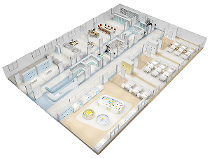 治療室設在護士工作站附近,主要為醫護人員進行治療準備、藥液配置的專用工作室。室內設有專用操作臺,壁柜、藥柜、發藥車等,室內需潔污分區管理。